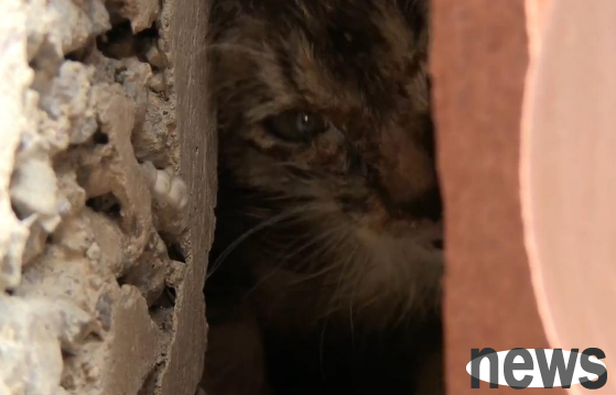 After the kitten saw the light, it cried at the small seam, and then the staff reached in and slowly pulled the kitten out.