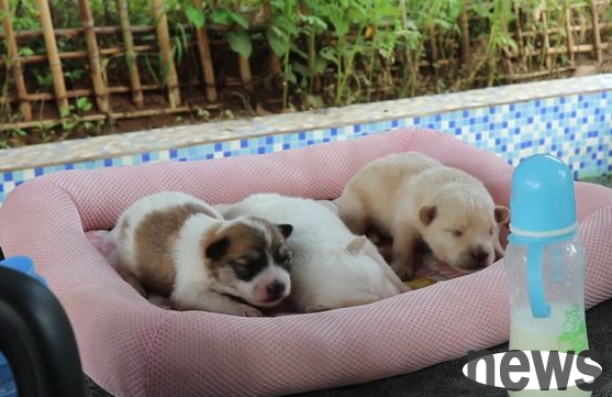 It turned out that the mother dog was a stray dog, wandering with these little guys. On that day, there was a car accident and she died on the spot. Only a few lonely puppies were left, abandoned on the side of the road. The environment where the puppies stayed was very harsh, so we brought them back to the base. The other furry kids were very curious about these little guys and kept surrounding us. Maybe they also wanted to see what the new little ones looked like. When feeding the puppies, they ate big mouthfuls, but they were obviously not used to using a bottle. They didn't know that their mother was no longer there.