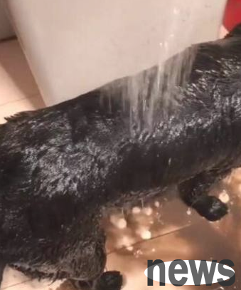 There is a dog who is very naughty and often makes his body dirty and covered with dust. The owner really couldn't stand it anymore, so he gave the dog a bath. As a result, the scene in front of him made the owner feel that the dog was extremely annoyed!