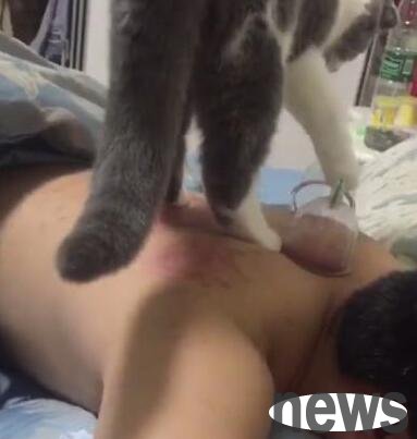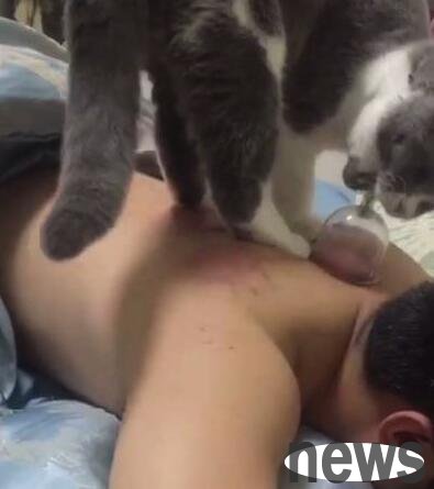 This owner has a cat at home. The cat is quite naughty, and the cat is also very curious. It likes to touch some dangerous things every time, which actually makes the owner quite helpless. The owner was doing cupping that day, and the curious kitten ran to the owner's side. The cat jumped and climbed onto the owner's back. At this time, the owner scolded the cat and asked the cat to get down, but the obedient cat got down.