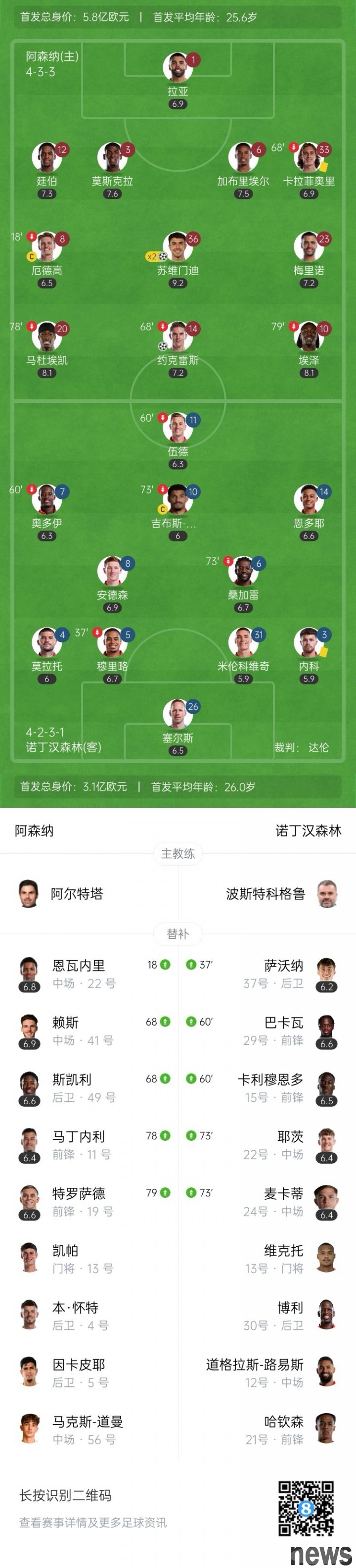 In the fourth round of the Premier League, Arsenal defeated Nottingham Forest 3-0 at home. Arsenal made five substitution adjustments in this game, but the 52 million euro new player Inkapier has not yet made his debut.
