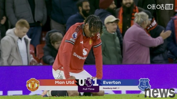 In the 12th round of the Premier League, Manchester United played one more player at home but lost to Everton 0-1.