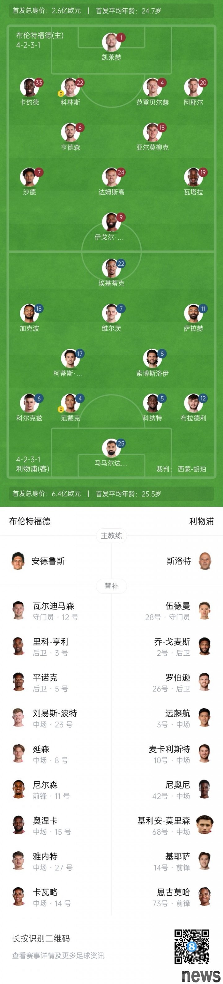 October 26 News In the 9th round of the Premier League, Brentford’s home game against Liverpool is about to begin. Started before the game.