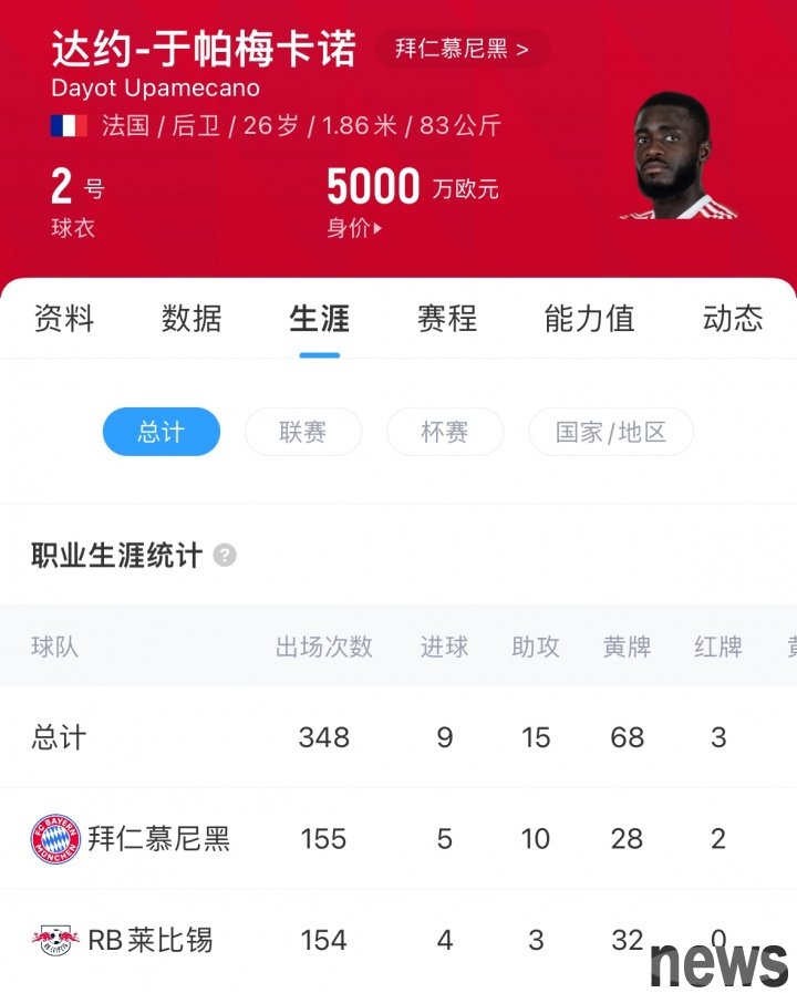 Yupa is 26 years old. He has made 155 appearances for Bayern and contributed 5 goals and 10 assists. His contract with Bayern expires next summer, and now Germany is worth 50 million euros.