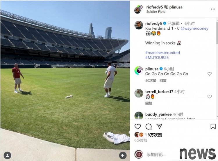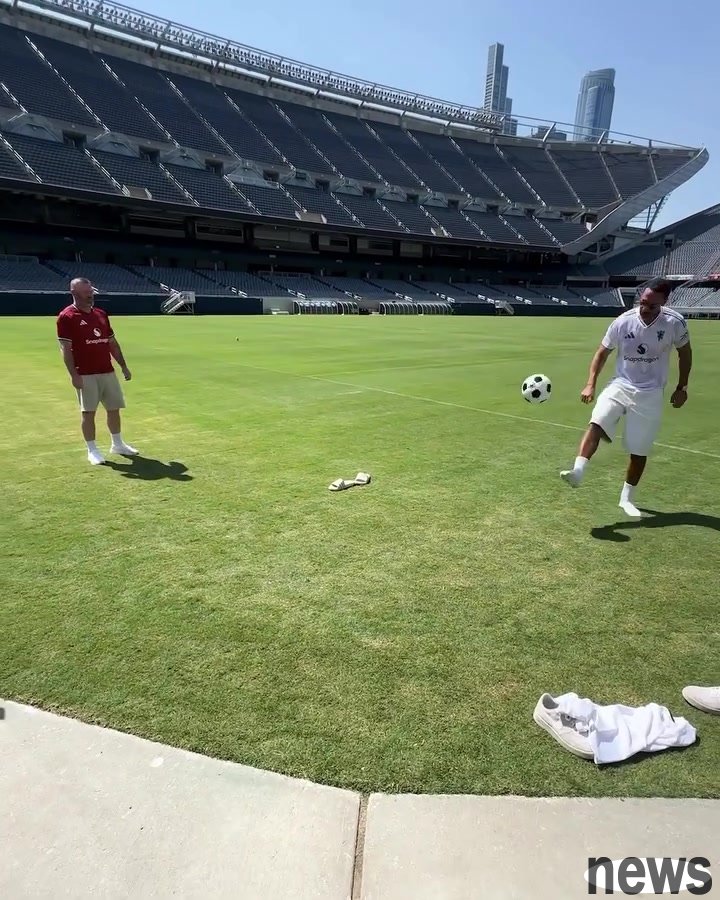 Ferdinand and Rooney participated in an event together in the United States. The two of them flipped the ball in the stadium, and Rooney made a mistake in the end.