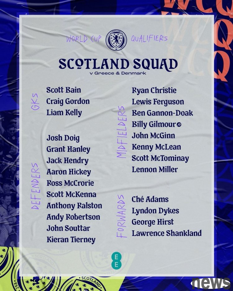 Scotland announced the latest roster, with Robertson, McGinn, Tierney, McTominay, Gilmour and other players selected.